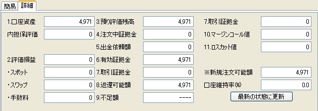 FXブロードネット(現在ポジポジ病解消用口座)スキャル用口座。米ドル円のスプレッドが0.5pips、ユロドルも0.9銭とまさしくスキャル向け。必要証拠金も少なくて済むのでグッドです。1,000通貨から取引できます!
