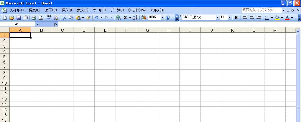 まずエクセルを新規作成しますね。↓こんなですね。
