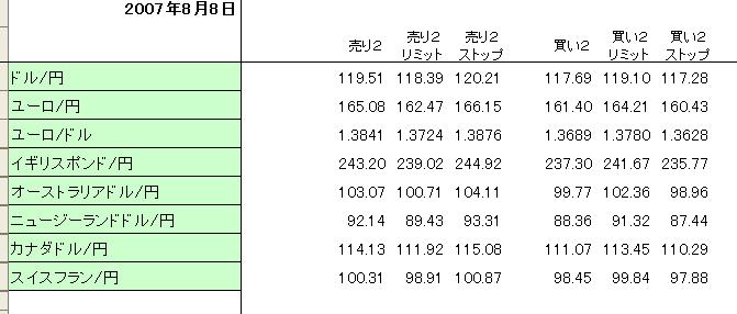 おはようございますの外為ひろです。はい。8/7(火曜)の指値ですよー